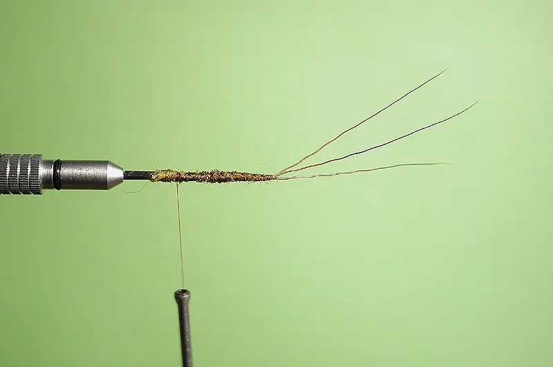 The body almost done. The tail fibres have been neatly arranged and a rib has been added while the tube is still wet.