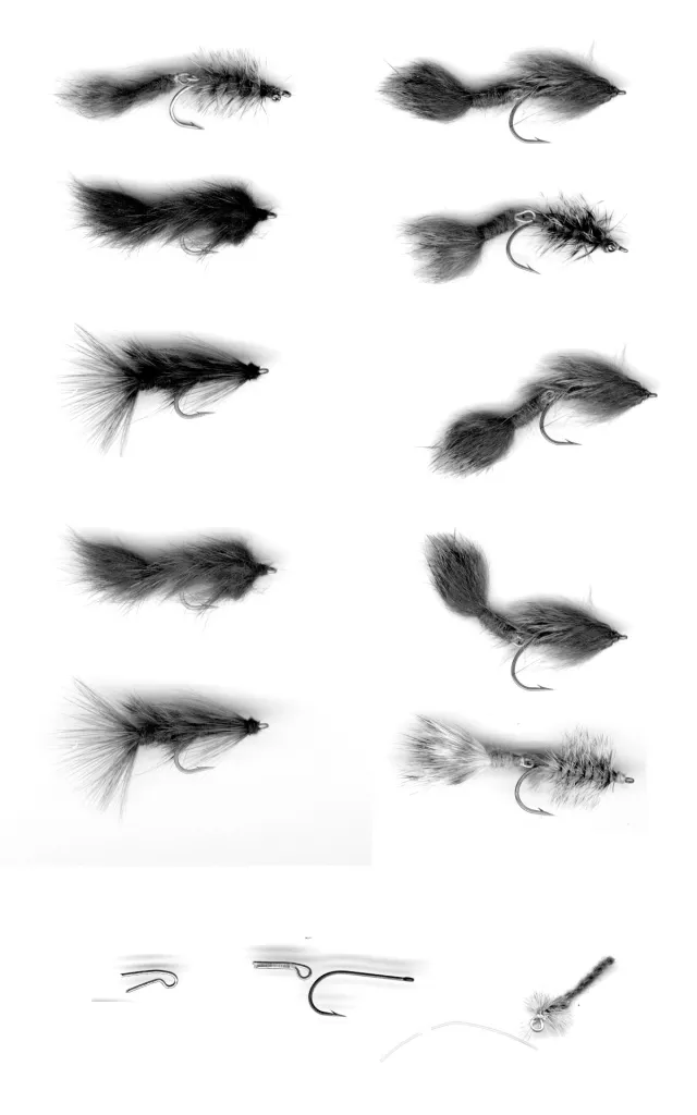 These articulated sea trout flies are from 1996, tied on hooks and home made shanks as seen under the flies.