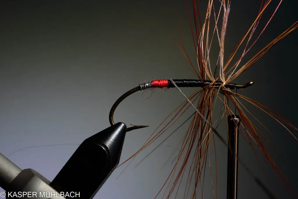 Avoid trapping the body hackle fibers by making them stand out from the hook shank.