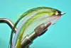 Flies are becoming more and more realistic - even the saltwater flies. Gammarus with transparent backs and scud patterns, shrimps tied with clear legs, looped tails and pulsating mouth parts and antennas. Now it is time for the bait fish. |