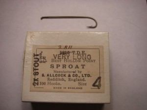 Looks to be a full box of Allcock 2811 8xl hooks. I would love to have a few of these, so if you win, consider sending me a couple. Also check out the #6 Allcocks from this seller. Allcock 2811 #6 (box) Happy bidding and good luck.