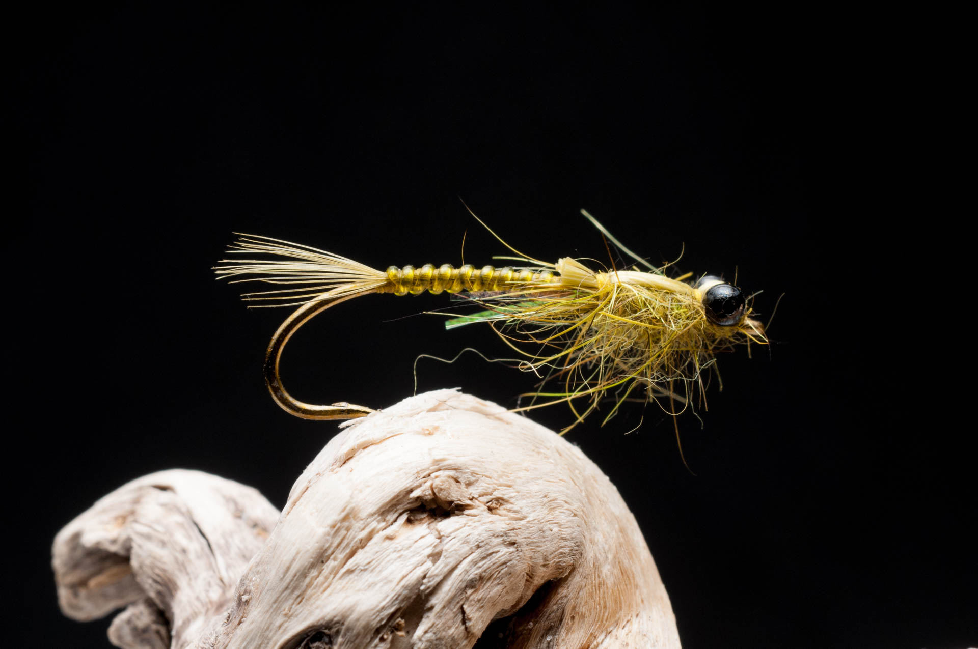 A beautifully tied dragonfly nymph, which I have fished (I cut off the tippet tag before photographing it). It was located in a box with a bunch of Diawl Bach's tied by Paul Slaney, but I'm not sure this is his fly. Paul confirmed that it is indeed his.