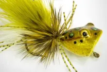 A fly fisher should next choose the right fly for the appropriate part of the water column. The bottom bass requires a weighted fly that resembles a crayfish or some other small dusky creature, such as a sculpin or goby, which scuttles along the bottom. “Scuttle” describes the action rock bass find irresistible. After the fly has been placed at the desired casting target and depth, an erratic retrieve that mimics the bottom bouncing antics of a spooked crayfish should commence. Time has proven three patent patterns most effective for this technique: Harry Murray's Strymph, Dave Whitlock’s “NearNuff” Crayfish, and Gordon Mackenzie of Redcastle’s excellent Deer Hair Freshwater Shrimp.